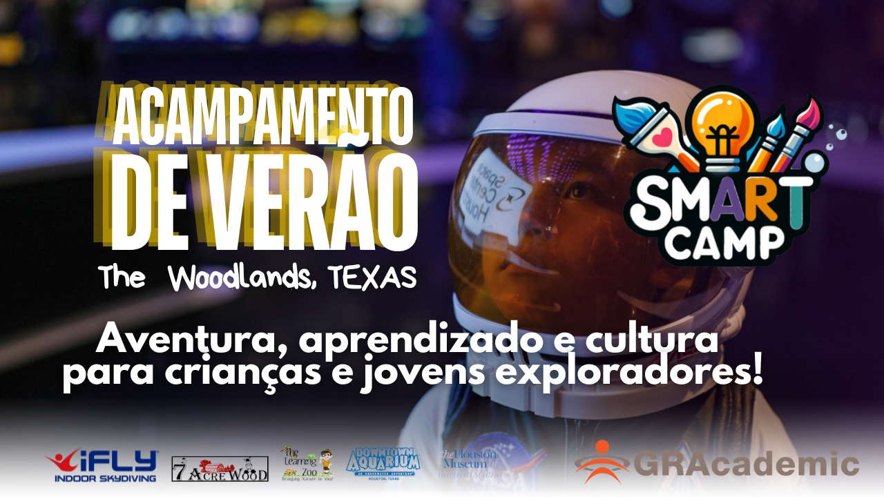 Informações resumidas para compartilhar: Se você quer que seu filho viva uma experiência única neste verão, que o prepare para o futuro enquanto se diverte ao máximo, SmART Camp é o acampamento internacional no norte de Houston que tem tudo! Localizado em The Woodlands, uma das cidades mais seguras e vibrantes dos Estados Unidos, SmART Camp é o lugar perfeito para seu filho explorar, aprender e aproveitar. No SmART Camp, seus filhos não apenas melhorarão o inglês, mas o farão enquanto participam de atividades emocionantes que combinam: Arte, ciência e tecnologia, além de esportes, e uma imersão total na cultura americana. SmART Camp é uma divisão especial da GRacademic. Somos uma organização com 25 anos de experiência em programas educativos internacionais. Nossa equipe de especialistas garante que cada criança tenha uma experiência personalizada, segura e enriquecedora. Graças à experiência e dedicação da GRacademic, seu filho estará em boas mãos, convivendo com estudantes de todo o mundo e vivendo uma verdadeira imersão cultural.